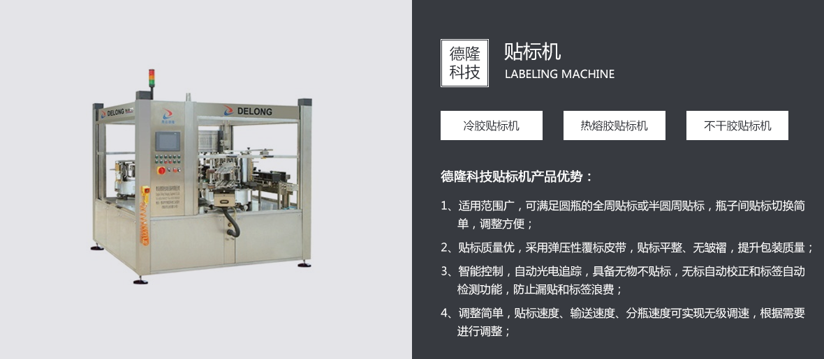 青島德隆自1995年創(chuàng)建以來,始終秉承創(chuàng)新與發(fā)展的優(yōu)良傳統(tǒng),依靠技術與服務贏得客戶的信賴與尊重。在貼標機向專注化、多行業(yè)領域發(fā)展并成就了中國異型瓶貼標市場的經典之后,應市場不斷變化的客戶需求,優(yōu)化產品結構,引進吸收國內外的流體包裝設備理念,在貼標機專業(yè)化地位穩(wěn)固的前提下,逐步實現關聯(lián)產品的多元化。   目前,青島德隆已經成為國內能同時滿足圓瓶、方瓶、扁瓶、錐度瓶、球形瓶、定位瓶等瓶型的高、中、低速多功能冷(熱)膠貼標領域的廠家。隨著碼/卸(瓶/罐)垛機、沖瓶機、灌裝擠(旋/壓)蓋機、全自動紙箱包箱設備、排序機、機器人碼/卸垛設備、激光噴碼機的運行成功,一個真正的流體包裝設備方案解決專家已經成熟。   青島德隆集團的···......[查看詳情]